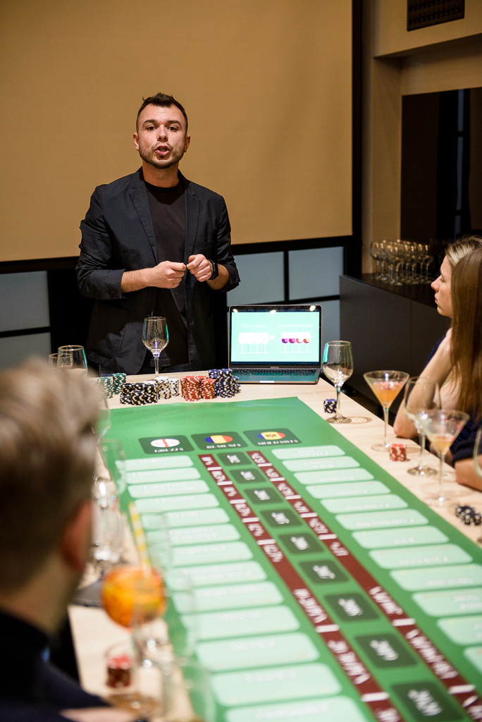 Our wine experts will guide you through the world of different flavours. During the wine casino, participants learn about wines while taking part in a game. It’s not only educational, but also great fun. We provide everything you need for an unforgettable evening.